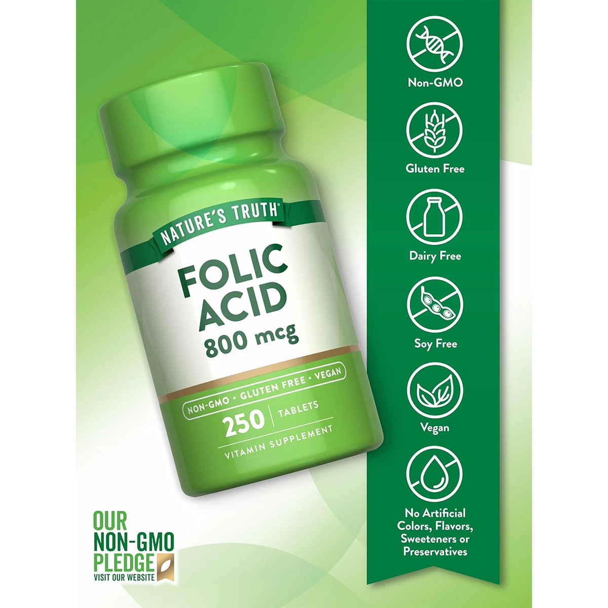تتميز حبوب Nature’s Truth Folic Acid بتركيبة تجمع بين جودة المكونات ودقة التركيز، فالمكون الأساسي هو حمض الفوليك بتركيز 800 ميكروغرام.